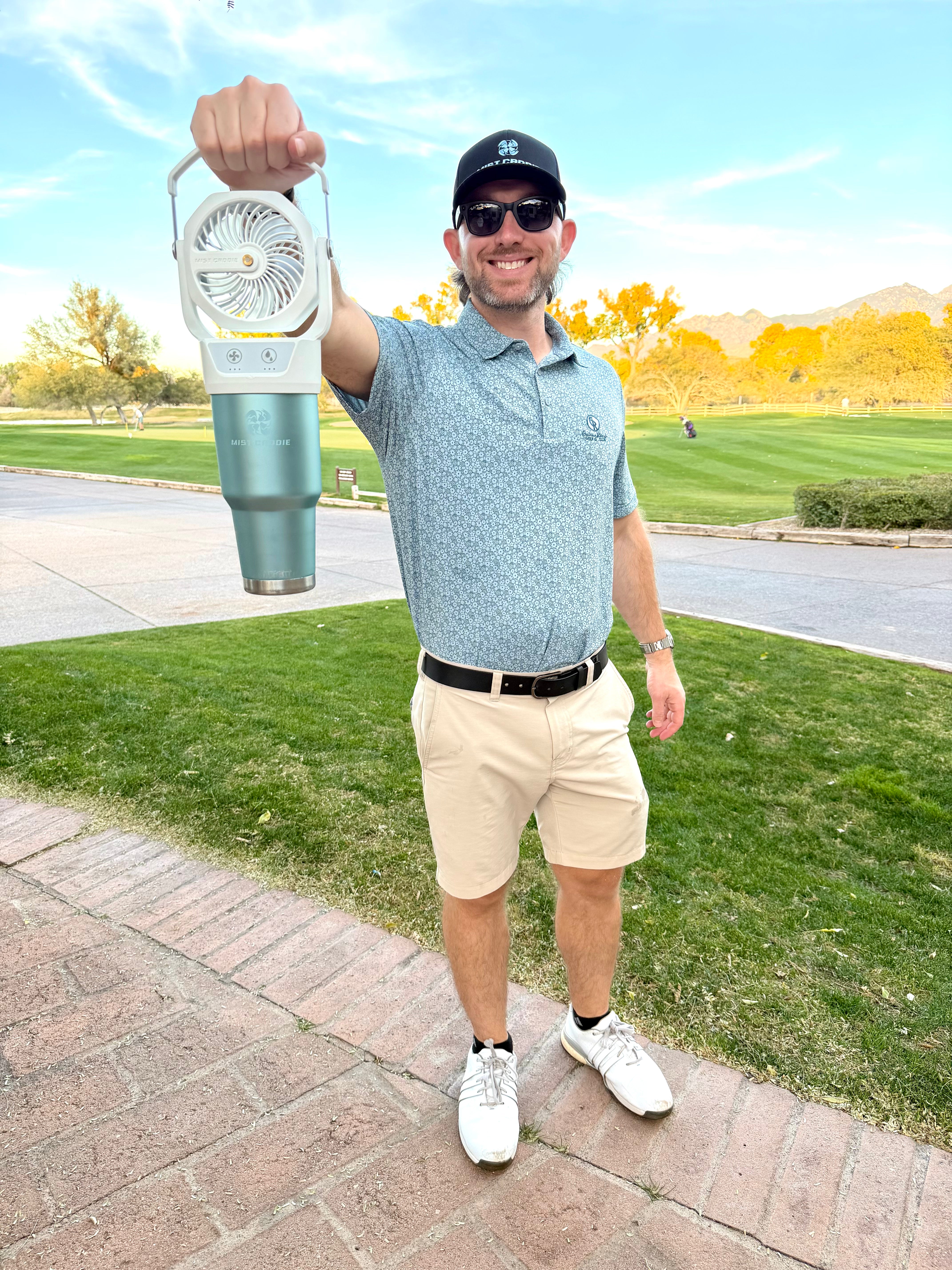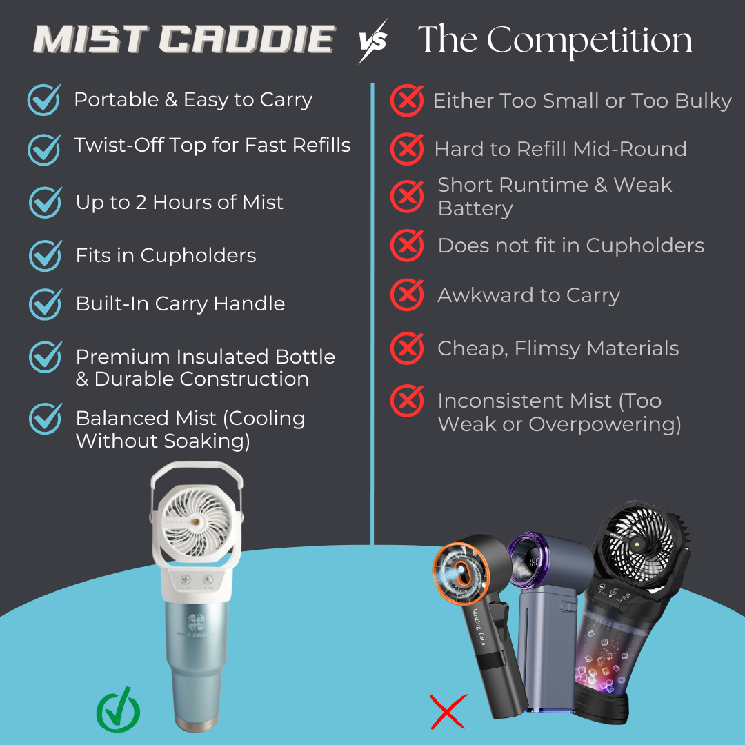Mist Caddie was designed specifically for golfers who want real cooling in extreme heat. We tested dozens of misting fans and they were either too weak, too bulky, or just inconvenient to use.